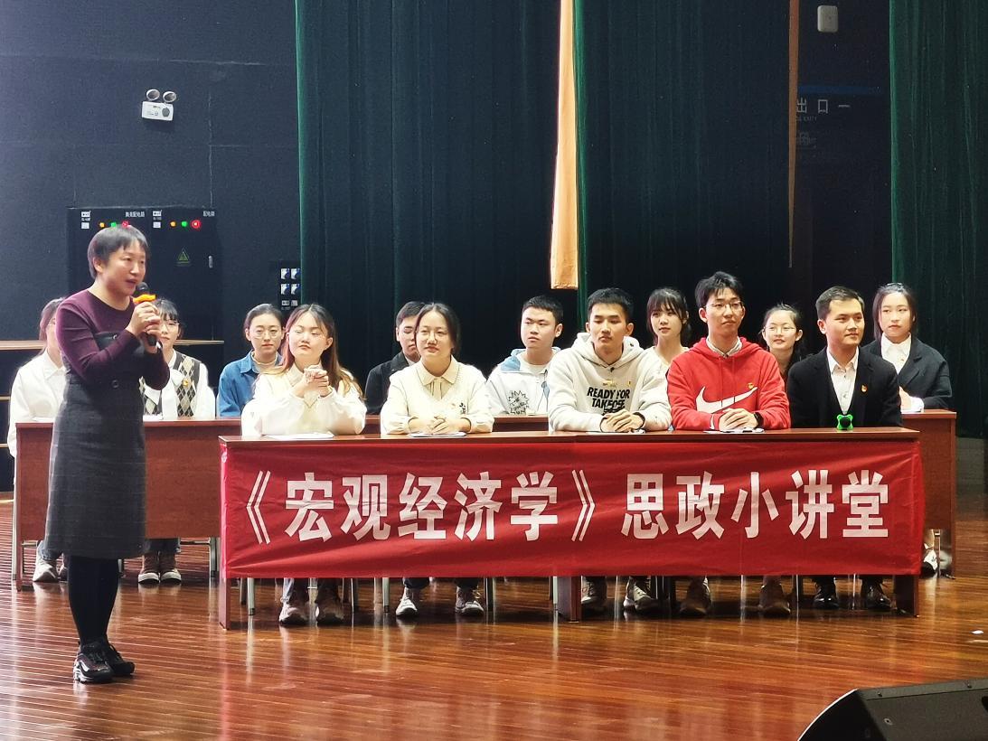 金融与贸易系李金滟老师分享了自己将党史学习教育融入课程思政的经验,她将自己长期建设的“《宏观经济学》思政小讲堂”搬到台上,以学生为主体的互动式教学模式颇具成效。她分享道,通过把党史学习教育与专业课学习深度融合,深入研究新时代背景下的中国经济景观,分析党和国家重大经济政策,更有利于我们走出西方经济学范式,构建中国经济学话语体系;更有利于回顾党的百年奋斗历程;更有利于深化课程思政教学模式,在专业教育中把师生的理想信念与价值追求深植于历史,延展于未来,树立专业报国的远大抱负。