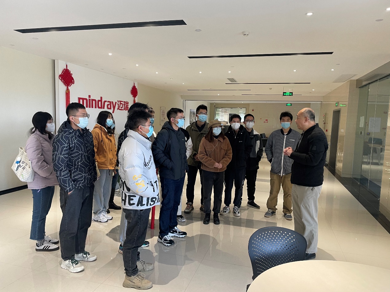 首先是武汉研究院运营总监麻生老师为同学介绍园区展厅并参观实验室,让同学们实地了解到迈瑞医疗的工作环境。