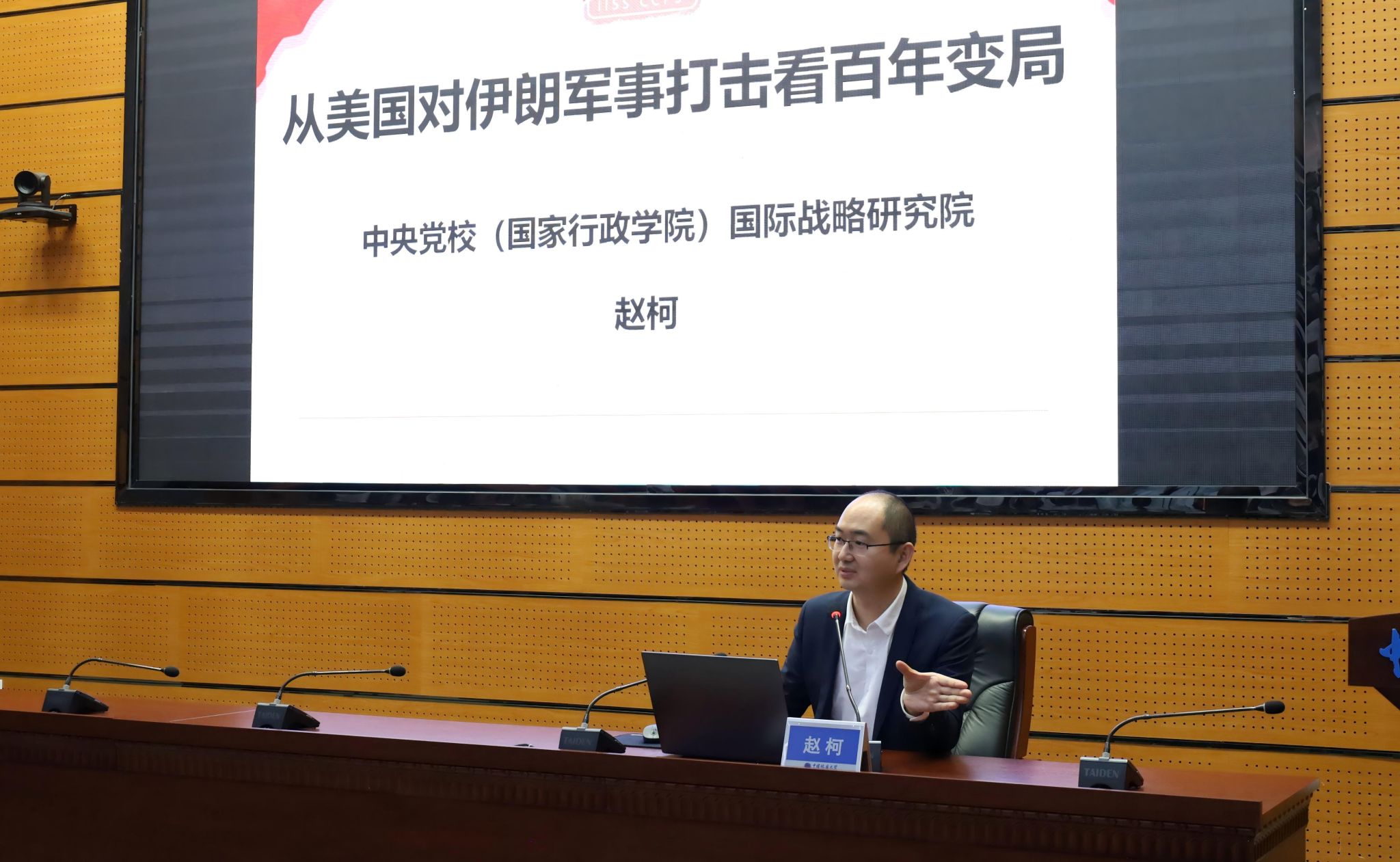 赵柯从“理解世界百年大变局”“国际格局演变的可能”“全面推进中国特色大国外交”三个维度系统展开。他以美伊冲突为切入点,指出这场冲突不仅是地区热点,更折射出国际秩序正在经历的深刻重塑。他通过对比不同时代对国际形势的判断,生动呈现了百年变局的加速演进。他系统阐释了中国特色大国外交的路径选择,指出中国始终秉持构建人类命运共同体的崇高目标,坚持和平发展道路,反对阵营对抗与“小圈子”外交,以开放应对封闭,以合作回应脱钩。他鼓励青年学子要在复杂多变的国际环境中保持战略定力,学会辨识国家核心利益,将个人发展融入民族复兴的时代洪流。