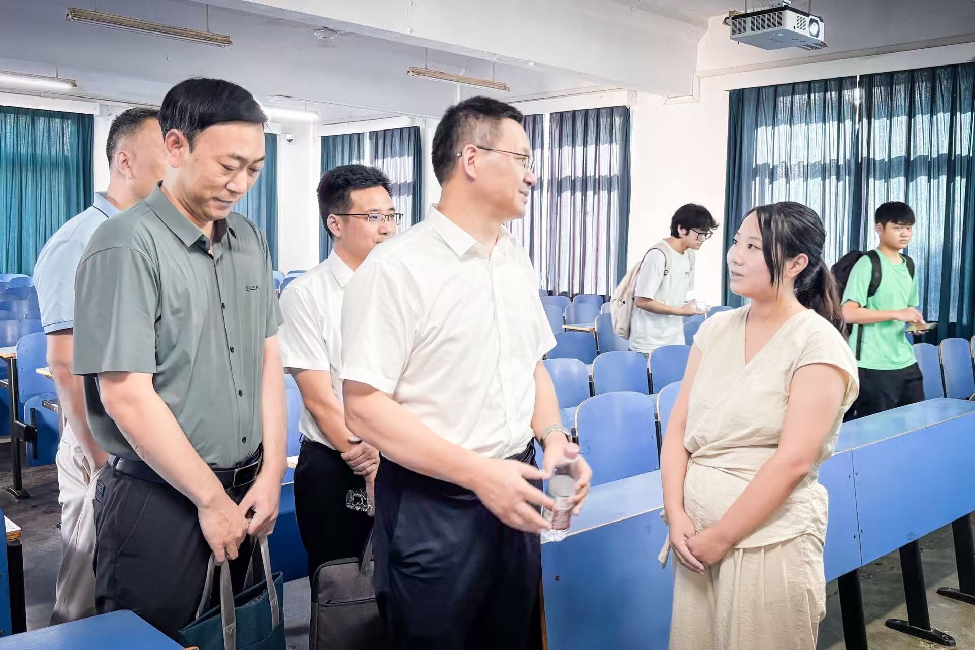 领导们认真聆听教师们深入浅出讲解,在课后围绕教学内容、教学方法、课程思政等内容同授课教师进行了亲切交流。