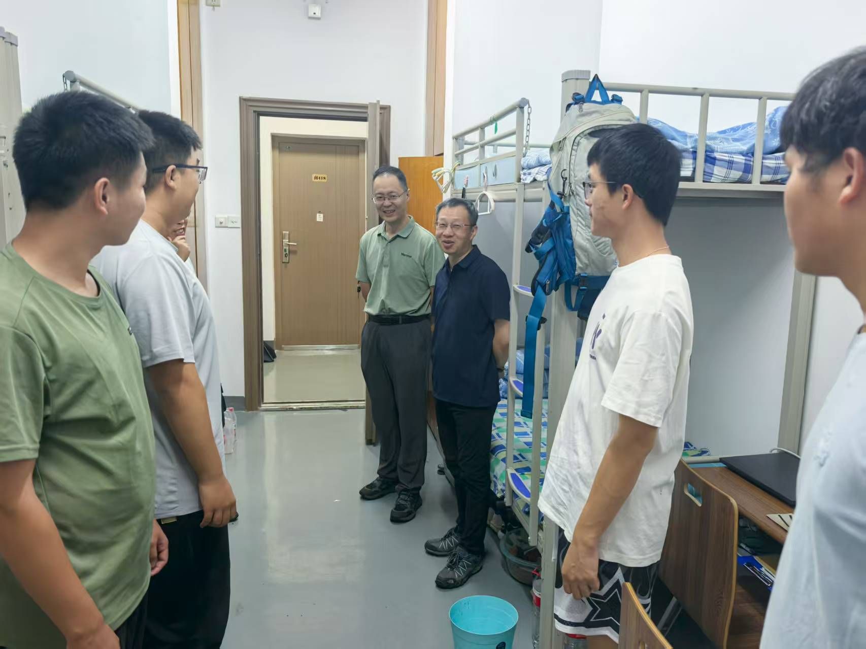 章军锋抵达基地后,前往宿舍与同学们亲切交流,细致询问大家的实习进展和生活情况。他叮嘱同学们在艰苦的野外环境中要互帮互助、注意安全,充分利用实习机会巩固专业知识。