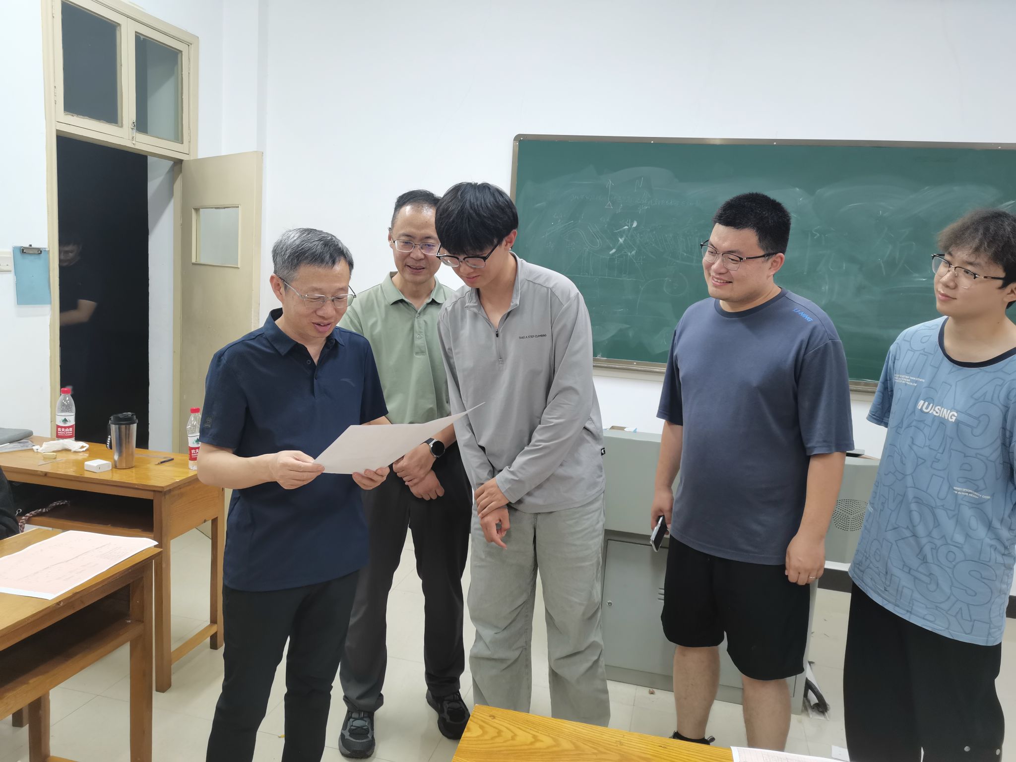 随后,章军锋来到教室,看望自习的学生,与正在整理野外填图成果的资源环境大数据工程专业学生进行交流,并对地质图件绘制工作给予指导,鼓励大家注重理论与实践结合,不断提升专业图件制作能力和地质问题综合分析水平。章军锋前往教职工宿舍,慰问实习指导教师和基地工作人员,对他们的辛勤付出表示衷心感谢,并聆听教师对实习工作的意见和建议。