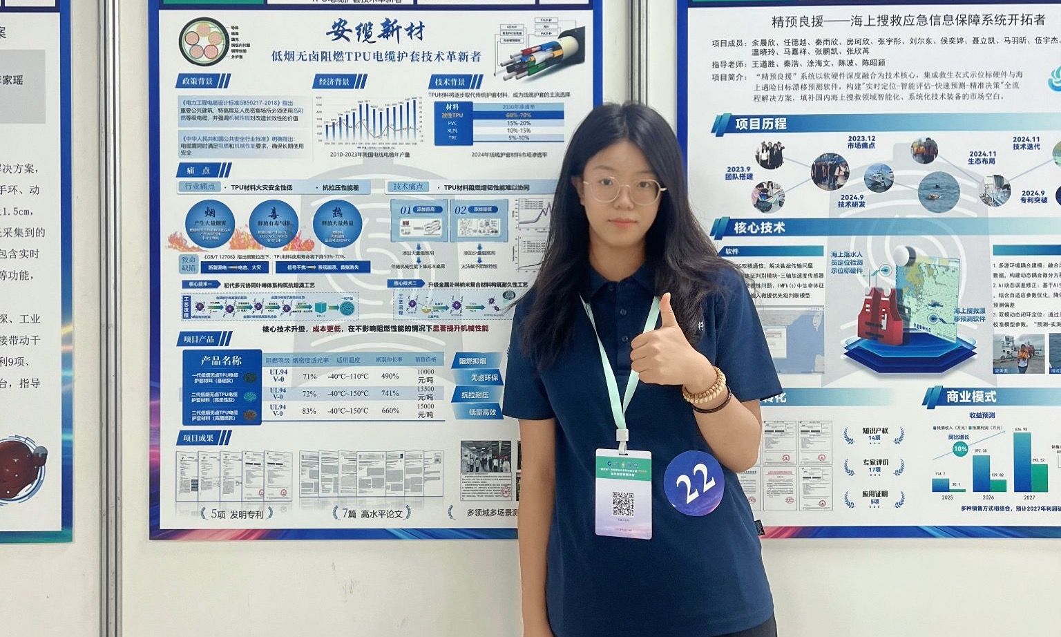 她说:“对我而言,创新创业是让知识从书本与实验室里‘行走’出来的历程。在探索阻燃新材料的日夜中,我亲身经历了理论如何转化为能应对真实安全问题的方案。每一次实验与迭代,都让我更深地理解到,技术真正的价值在于它与产业需求、社会安全的紧密联结。这段经历赋予我的,远不只奖项与专利,更是一种务实的思维与清醒的认知,真正的成长,在于用所学回应真实世界的呼唤。这将成为我未来路上不变的坐标。”
