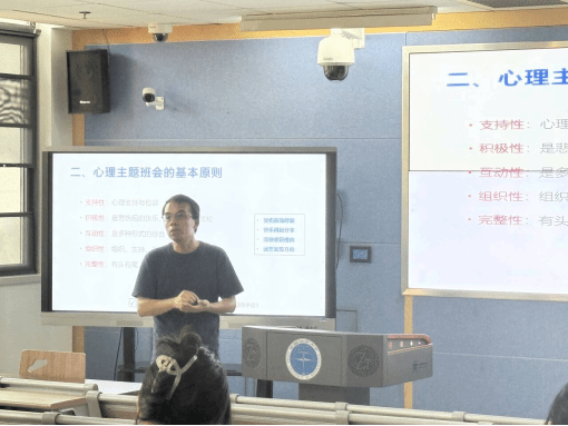 为进一步推进心理育人体系建设,强化班级心理工作队伍能力,10月10日下午,心理健康教育中心于未来城校区公教楼1-220举办“成长与发展”主题班会培训讲座。本次讲座由黄海老师主讲,培训对象为研究生一年级班长、本科生大二年级班级心理委员及学院心理骨干。讲座旨在通过系统化培训,帮助学生骨干掌握班级心理主题教育的设计思路与操作方法,推动心理健康教育在班级层面的深入落实。